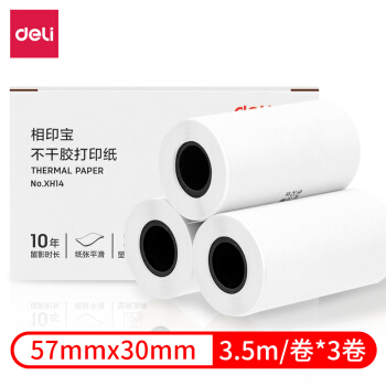 得力(deli)相印宝咕咕机喵喵机专用不干胶白色热敏打印纸3卷装(单卷:宽57mm*直径30mm*长3.5m)XH03