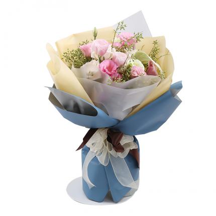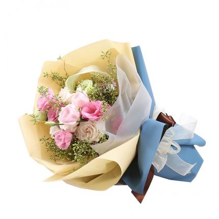 说明:由于鲜花包扎的花艺师不同,可能在形式和搭配上与图片不完全一致,但保证主花材的新鲜程度、数量、颜色与说明一致,谢谢。