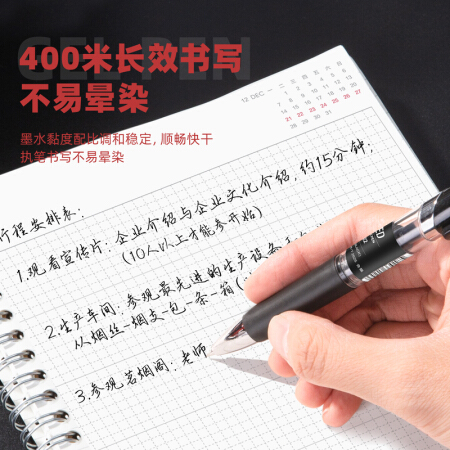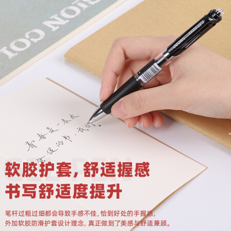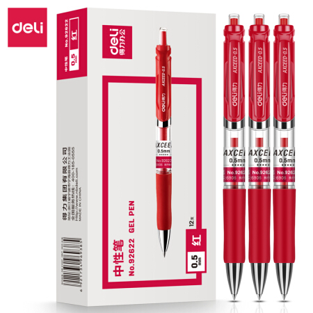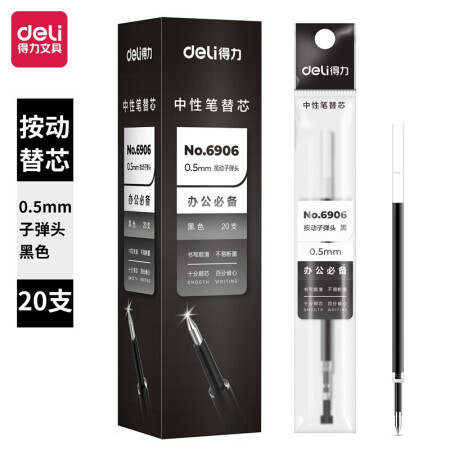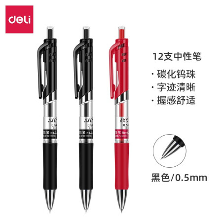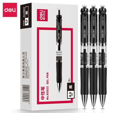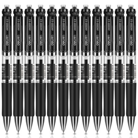 得力(deli)0.5mm按动黑色中性笔 子弹头水笔签字笔12支/盒92622