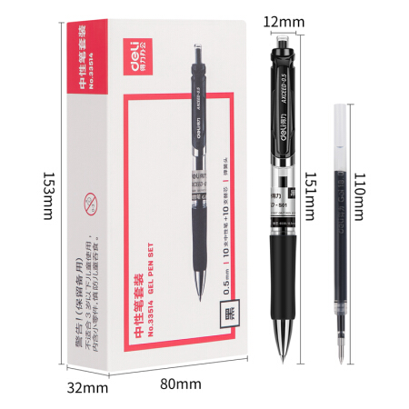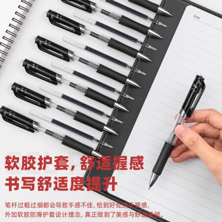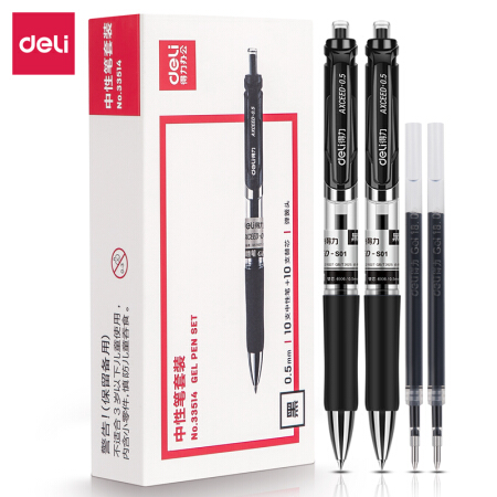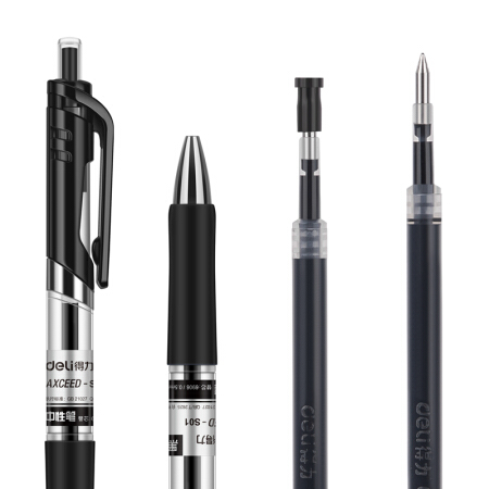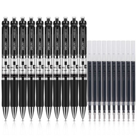 得力(deli)S01按动中性笔签字水笔套装 10支笔+10支替芯33514