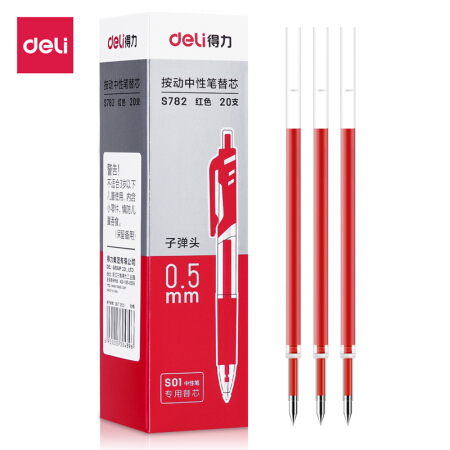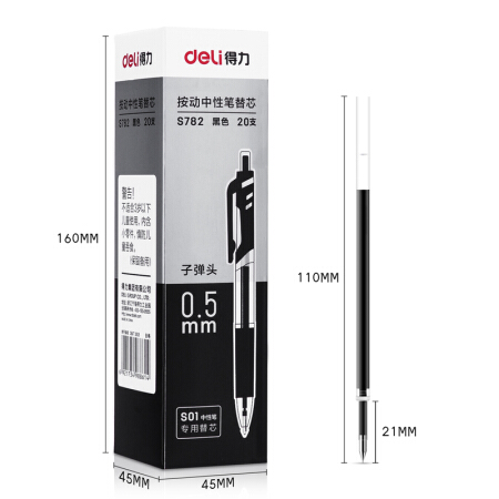 得力(deli)0.5mm按动中性笔芯替芯 S01 K35用 黑色子弹头20支/盒