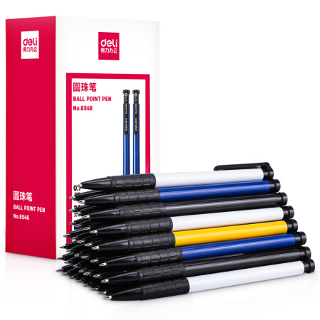 得力(deli)0.7mm蓝色按动圆珠笔中油笔 软胶握手原子笔36支/盒