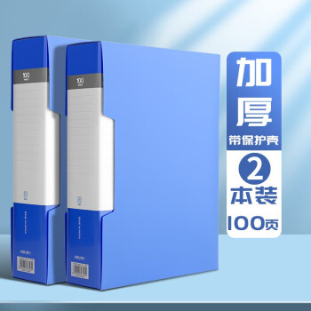 得力(deli)文件册 A4资料册活页文件插页袋多页多层档案夹 学生试卷科目收纳袋文件保护 办公用品 【加厚】100页 2本