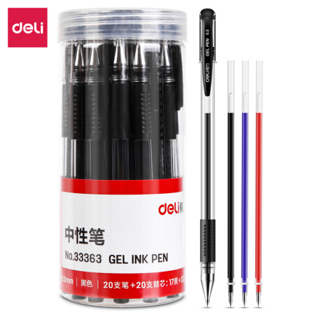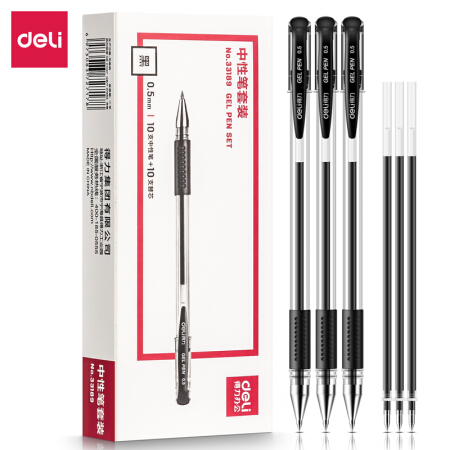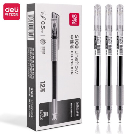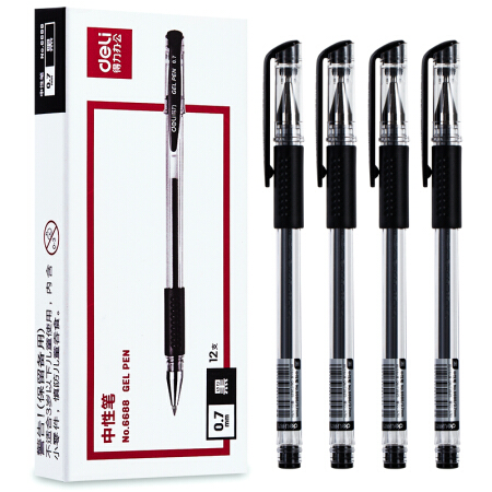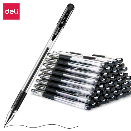 得力(deli)60支0.5mm中性笔签字笔水笔 子弹头黑色33109办公用品