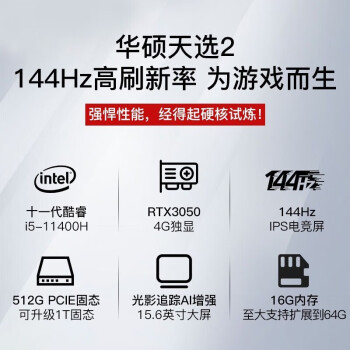 华硕笔记本电脑 天选2 15.6英寸学习设计办公电竞游戏笔记本(i5-11400H/RTX3050/16G内存/512G固态/144Hz刷新率/日蚀灰)