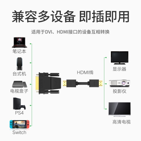 绿联(UGREEN)DVI公转HDMI母转接头 DVI24+1/DVI-D转HDMI高清转换线 支持PS4笔记本电脑显卡接显示器