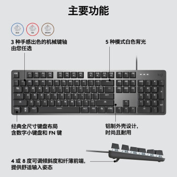 罗技K845机械键盘 有线机械键盘/游戏机械键盘/英雄联盟吃鸡键盘/办公家用键盘/红轴/黑色