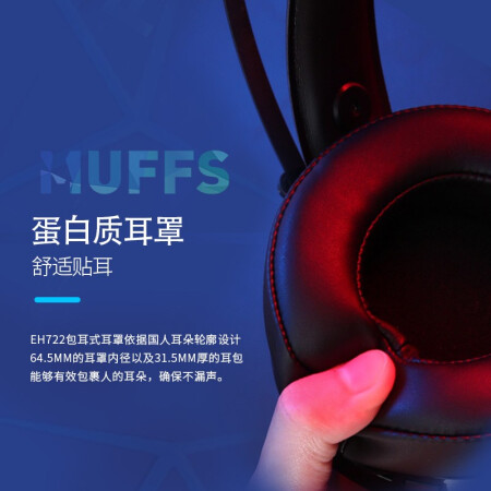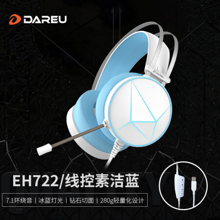 达尔优(dareu)EH722头戴式游戏耳机 头戴式耳机带麦/学习网课音乐直播听歌听力/cf吃鸡绝地求生电脑游戏耳机/虚拟7.1声道/USB线控/素洁蓝