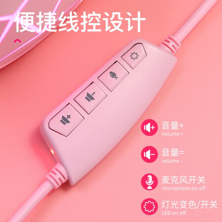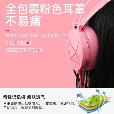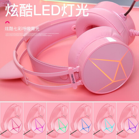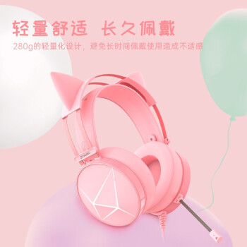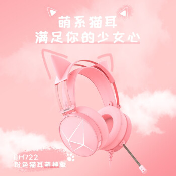 达尔优(dareu)EH722头戴式游戏耳机 头戴式耳机带麦/学习网课音乐直播听歌听力/cf吃鸡绝地求生电脑游戏耳机/虚拟7.1声道/USB接口粉色猫耳朵版