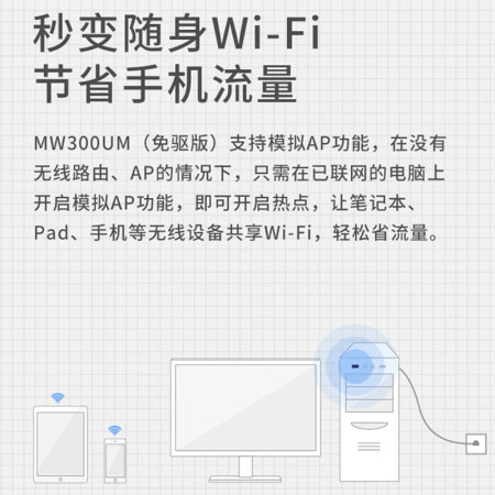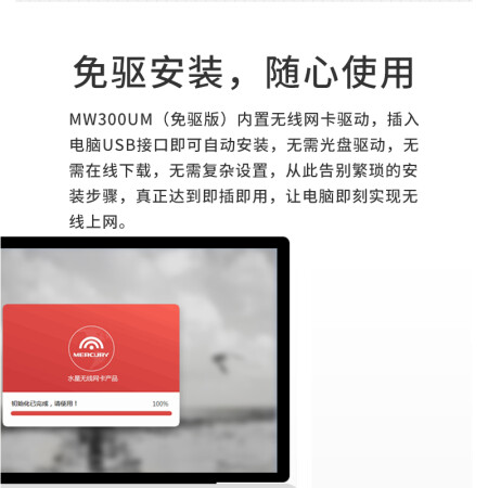 水星(MERCURY)USB无线网卡MW300UM免驱版 台式机笔记本电脑随身wifi接收器发射器/自动安装免驱动