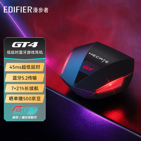 漫步者GT4蓝牙耳机 真无线蓝牙耳机/入耳式降噪运动防水电竞游戏耳机/适用华为小米苹果黑鲨红魔手机