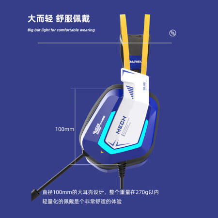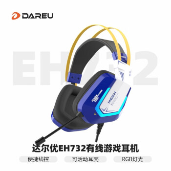 达尔优(dareu)EH732头戴式游戏耳机 有线头戴式绝地求生吃鸡电竞游戏耳机带麦/学生网课直播音乐台式机笔记本电脑适用/USB接口/7.1模拟环绕声