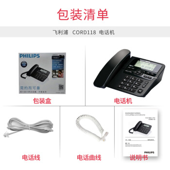 飞利浦(PHILIPS)CORD118电话机座机 固定电话 办公家用 来电显示 双接口 免电池