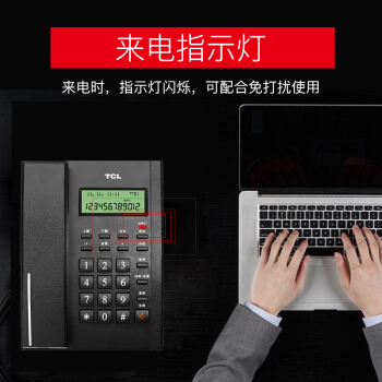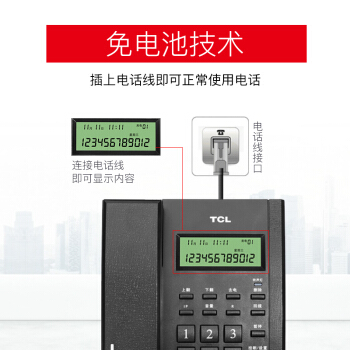 TCL 电话机座机 固定电话 办公家用 双接口 来电显示 时尚简约 HCD868(79)TSD经典版 (黑色)