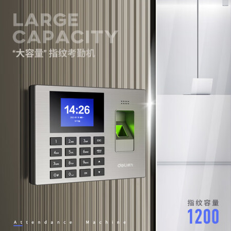 得力(deli) 指纹考勤机公司员工上下班打卡机食饭堂签到机软件打卡器自动生成报表U盘下载 【1200枚指纹+脱机考勤】14060