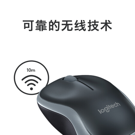 罗技(Logitech)M185(M186) 鼠标 无线鼠标 办公鼠标 对称鼠标 黑色灰边 带无线2.4G接收器