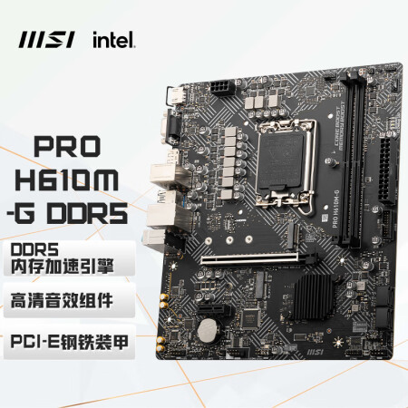 微星(MSI)PRO H610M-G DDR5电脑主板 支持CPU 14400F /13400F/13490F(INTEL H610/LGA1700)