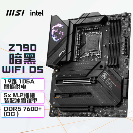 微星(MSI)MPG Z790 CARBON WIFI 暗黑电脑主板 支持DDR5 CPU 14900K/14700K/13900K(Intel Z790/LGA 1700)