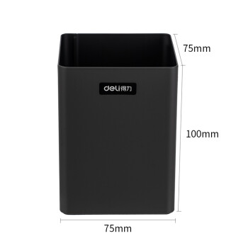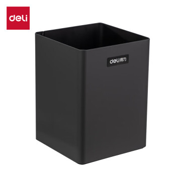 得力(deli)简约金属方形笔筒 时尚办公桌面收纳盒 黑色