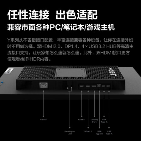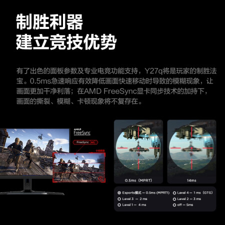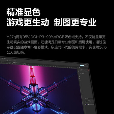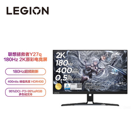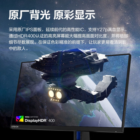 联想(Lenovo)拯救者27英寸电竞显示器 2K Fast IPS 180Hz 低蓝光 FreeSync 1ms HDR400 升降旋转 音箱 Y27q-30