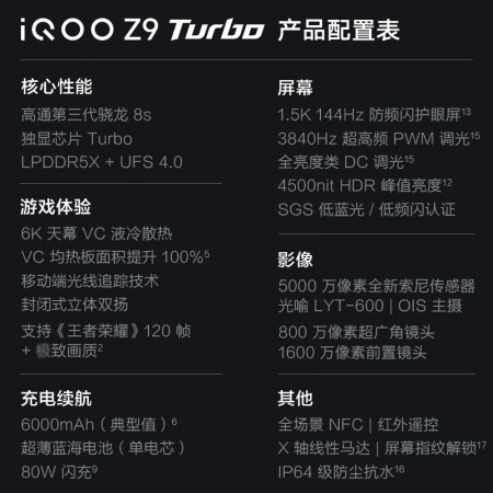 vivo iQOO Z9 Turbo 5G电竞手机 骁龙8Sgen3 独显芯片 Turbo 6000mAh蓝海电池 1.5K 144Hz防频闪护眼屏