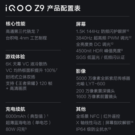 vivo iQOO Z9 5G电竞手机 骁龙7gen3 6000mAh超薄蓝海电池 144Hz 防频闪护眼屏