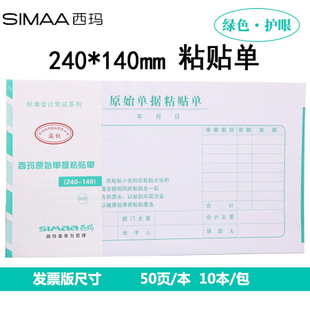 西玛(SIMAA)原始单据粘贴单 240*140mm 50页/本10本/包 借款审批支出报销单据财务专用通用会计记账凭证纸