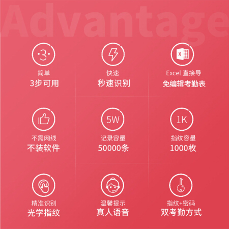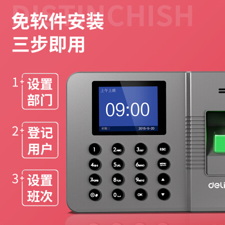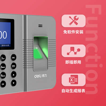 得力(deli)智能指纹考勤机 免软件打卡机 自动生成报表33113