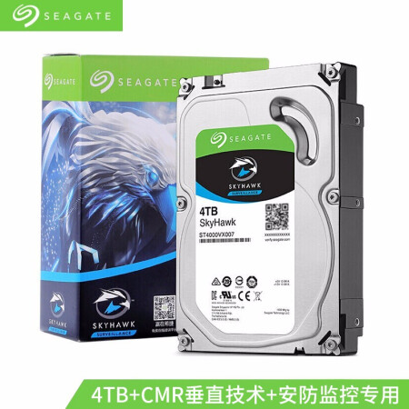 希捷(Seagate)监控硬盘4TB 64MB 5900转 SATA 垂直 机械 PMR CMR 希捷酷鹰SkyHawk ST4000VX007
