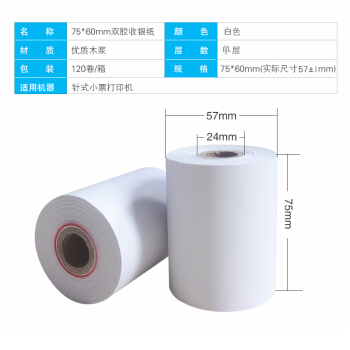 75*60单层一联普通纸双胶收银纸 刷卡机纸小票针式打印纸 120卷/箱 7560单层收银纸整箱120卷