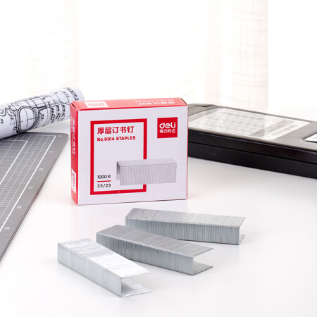 得力(deli)23/23厚层订书钉/订书针 1000枚/盒 单盒装
