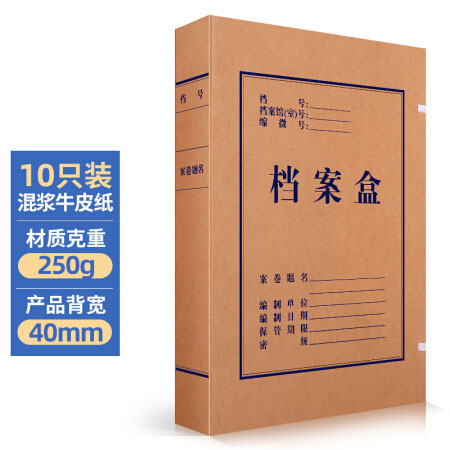 得力(deli)10只40mm250g牛皮纸文件盒 加厚档案盒 财务凭证文件盒 考试收纳5921