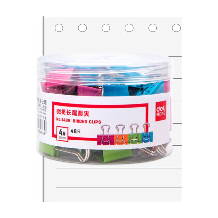 得力(deli)48只25mm微笑系列金属长尾票夹票据夹燕尾夹 混色装8486
