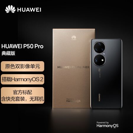 华为HUAWEI P50 Pro 4G全网通 原色双影像单元 HarmonyOS 2 万象双环设计12GB+512GB曜金黑典藏版华为手机