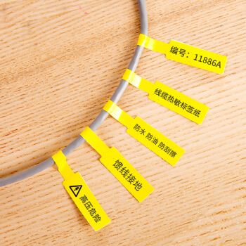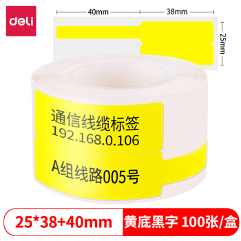 得力(deli)线缆热敏标签纸(25*38+40mm) 三防不干胶热敏打印纸 黄底黑字(100张/盒)11886A