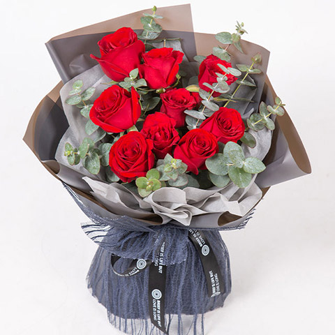 9朵卡罗拉红玫瑰花束 同城鲜花配送