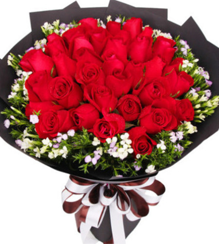 说明:由于鲜花包扎的花艺师不同,可能在形式和搭配上与图片不完全一致,但保证主花材的新鲜程度、数量、颜色与说明一致,谢谢。