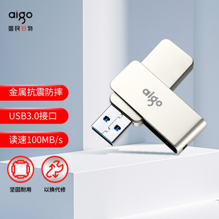 爱国者(aigo)128GB USB3.0 U盘 U330金属旋转系列 银色